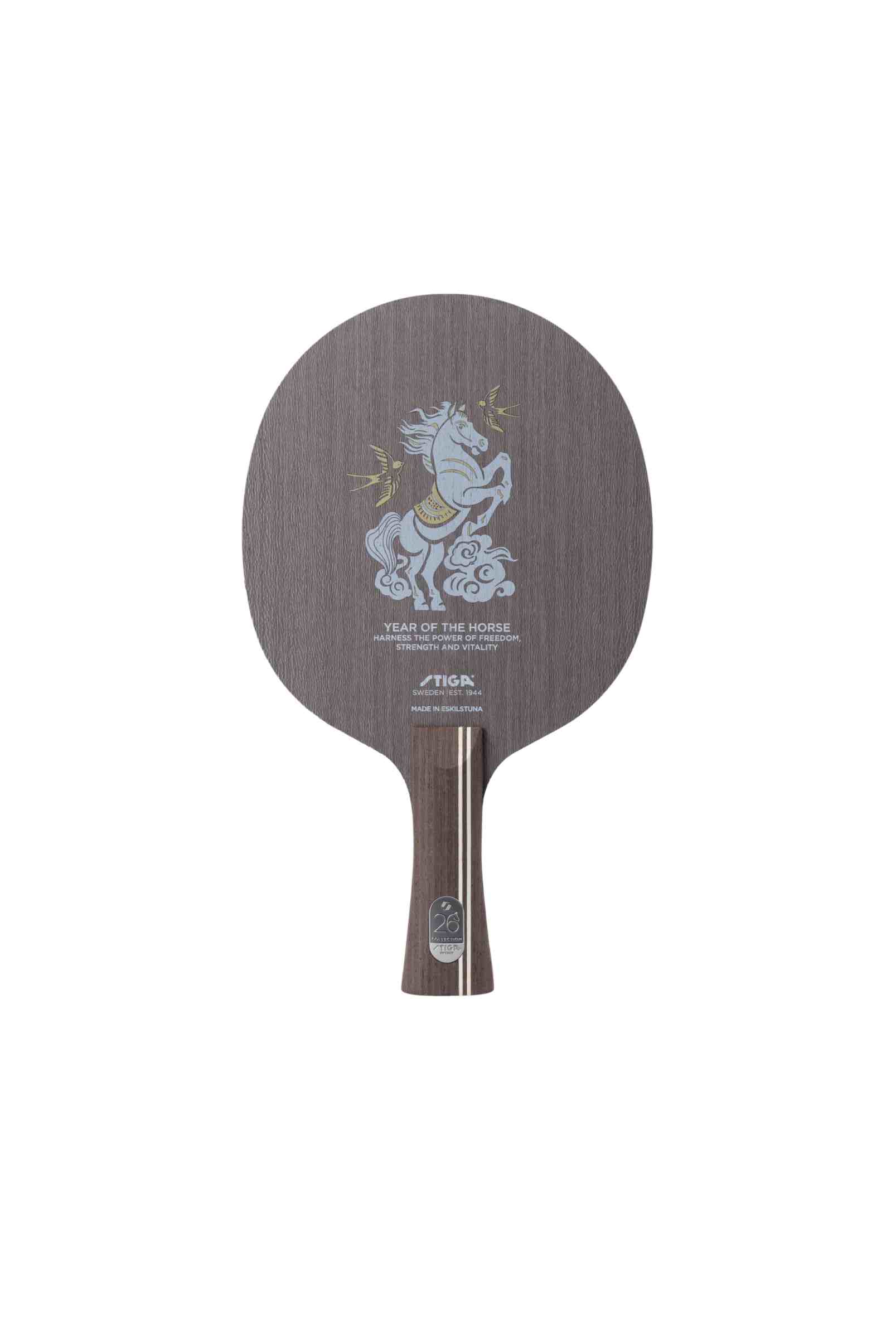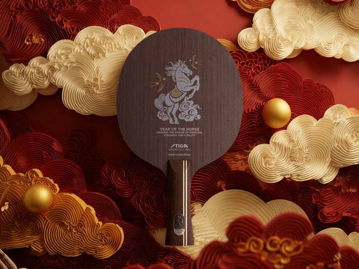 底板正面的马年主题设计颇具文化韵味,骏马腾云、燕雀相伴的图案,诠释“自由、力量与活力”的精神内核,与乒乓竞技的激情特质深度契合。