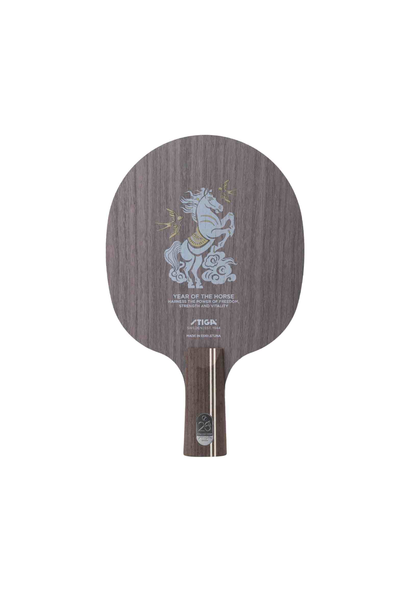 斯帝卡马年生肖限量底板,以经典底板“许昕蓝标”为原型,延续着斯帝卡典型风格--追求优美的手感和先进的碳素科技合二为一,并使这两种特质在底板中达到极致与平衡。